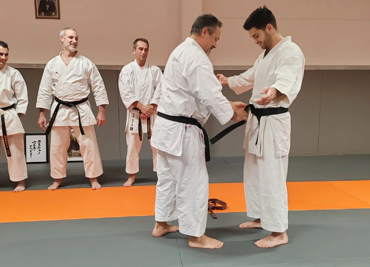 Sa ceinture noire lui a été nouée par son parrain, Dimitri, dans une ambiance chaleureuse et empreinte d’émotion.