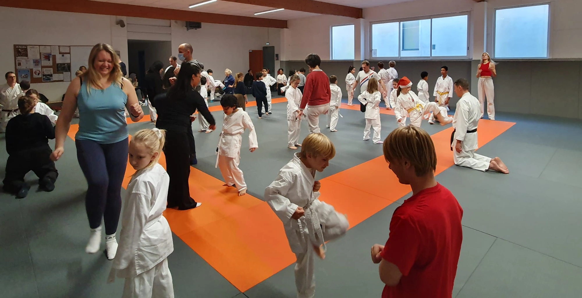 Après un échauffement tous ensemble, les enfants ont pris plaisir à montrer à leurs parents ce qu’ils apprennent pendant les cours. Place ensuite à la pratique en binômes parents-enfants, autour des bases du karaté : tsuki, gedan barai et coups de pied, le tout dans un esprit ludique, bienveillant et accessible à tous.